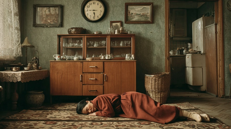 Кыһын. Тымныы, бытарҕаннаах тохсунньу ыйа. Марфа Петровна соҕотоҕун уу-чуумпу дьиэтигэр олорор. Биир сарсыарда, чэй иһээри, үрдүк долбууртан чааскытын ылаары уунан иһэн, халтарыйан, сууллан түстэ. Эмискэ «лыс» гынар тыас иһилиннэ. Ыарыы сүрэҕин хам туппутугар, эмээхсин ынчыктыы-ынчыктыы муостаҕа оҕунна.