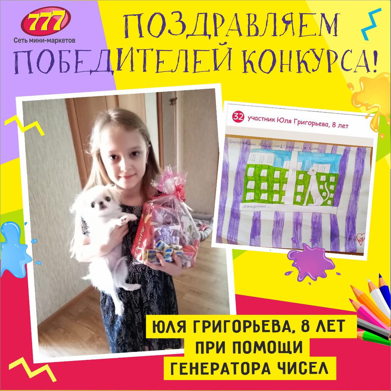Күрэс үһүс кыайыылааҕын «Инстаграмҥа» быһа эфиргэ рандом чыыһылата быһаарда. 8 саастаах Юля Григорьева үлэтэ соргу хараҕын тардан ылла. Кырачаан Юля дьиэ харамайын олус сөбүлүүр буолан, хартыынатыгар куоскатын уруһуйдаабыт.