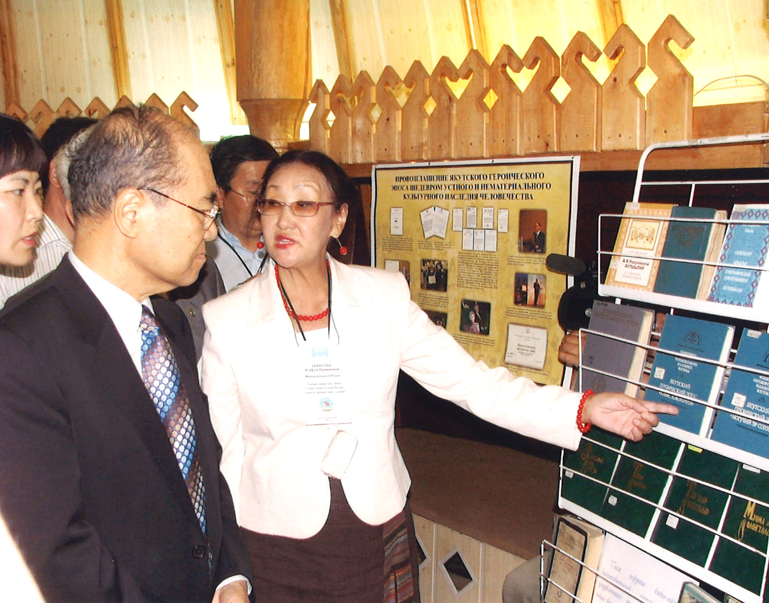 Арассыыйатааҕы норуот айымньытын дьиэтигэр тиийбиппэр, ЮНЕСКО Арассыыйаҕа экспердэ Э.С. Кунина наһаа үчүгэйдик сыһыаннаспыта. Биир үлэһитин сыһыаран, кинилиин өссө күүскэ кичэйэн көннөрдүбүт, эптибит. Онон Арассыыйаҕа бастаан, аны өссө улахан үлэ үөһүгэр түстүбүт. 700 лииспитин 900-кэ тиэрдэн, английскайдыы тылбаастатан, барытын ситэрэн-хоторон, Парижка ЮНЕСКО-ҕа тиийдибит.