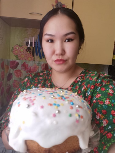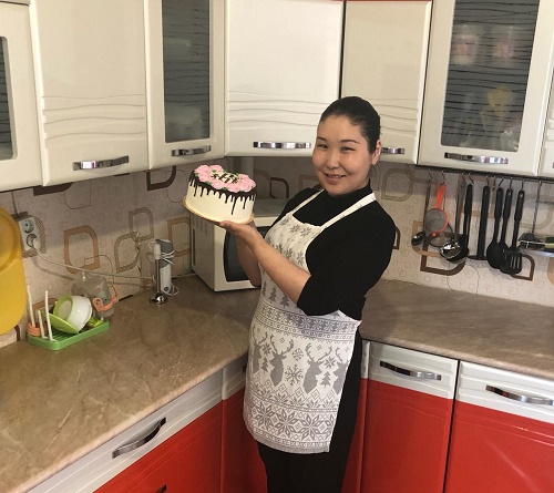 Нэһилиэк дьаһалтатын исписэлииһэ, үс оҕо ийэтэ Анна Малых — торт оҥорор маастар.