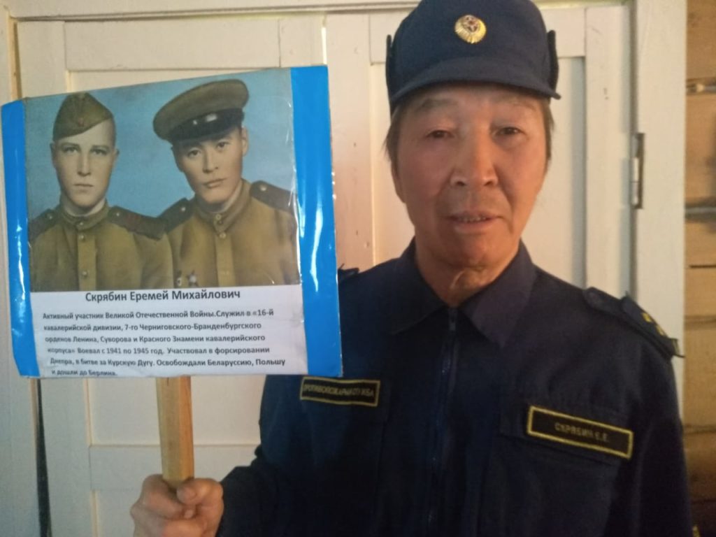 Хаҥалас улууһун Көрдөм нэһилиэгин олохтооҕо, «Кыһыл сулус» уордьан кавалера, Аҕа дойду сэриитин l истиэпэннээх, «Албан аат» ll истиэпэннээх уордьаннарын хаһаайына Аҕа дойду Улуу сэрии кыттыылааҕа Еремей Михайлович Скрябин 1918 сыллаахха биэс оҕолоох ыалга улахан уолунан Дьөппөн нэһилиэгэр төрөөбүтэ. Кини 1941 сыл от ыйын 30 күнүгэр фроҥҥа ыҥырыллан төрөөбүт дойдутун көмүскүү айаҥҥа туруммута.