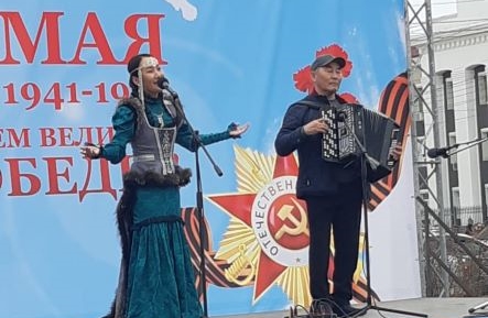 Дьокуускайга Улуу Кыайыы күнүн көрсө байаанынан ырыа ыллаатылар.