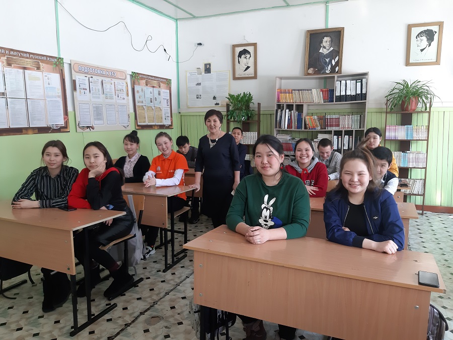 Сарсыныгар оскуола үлэһиттэри кытта кэпсэтэн бүппүтүм кэннэ 9-с кылаас салайааччыта Татьяна Каратаева: “Мин оҕолорум быйыл 9-с кылааһы бүтэрэллэр. Киирэн оҕолору кытта көрсөрүҥ буоллар. Суруналыыс буолуон баҕалаах оҕолор бааллар”, — диэн көрдөспүтүн быһа гыммакка, үөрэнээччилэри кытта көрсөөрү кылаас боруогун атыллаабытым – били, массыынанан бииргэ айаннаан кэлбит бэрт бэһиэлэй, көхтөөх, нууччалыы эттэххэ “живой” оҕолорум бэйэлэринэн олороллор эбит. Миигин көрөөт, билэр киһилэринии: “Аа, эн дуо?”, — дии түстүлэр.