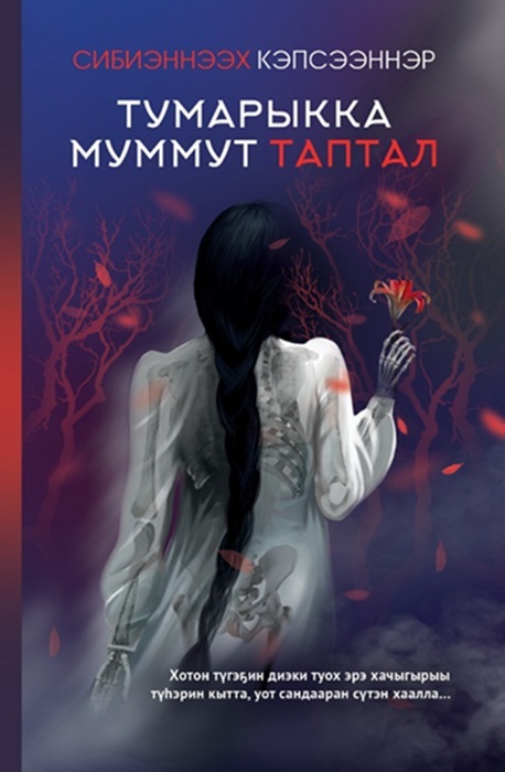 …Иҥнэри түспүт сэргэҕэ өйөнөн, күлүк сордоох токуччу түһэн боруоран олороро. Куту-сүрү ыга баттыыр ыас хараҥа түүнтэн да, курдары охсор, хаарынан сабыта ыһыахтыыр тыалтан да күлүк имин да тартаран көрбөтө. Кинини арай күөгэйэр күнүгэр умуллубут кылгас олоҕун туолбатах ыра санаатын минньигэс долгуна угуттуура. Ол хаһан эмит эргийэн кэлэр ыра санаатын кынатыгар уйдарар туһуттан кини эмиэ тыыннаах дууһалыы күлүҥнээн сырыттаҕа…